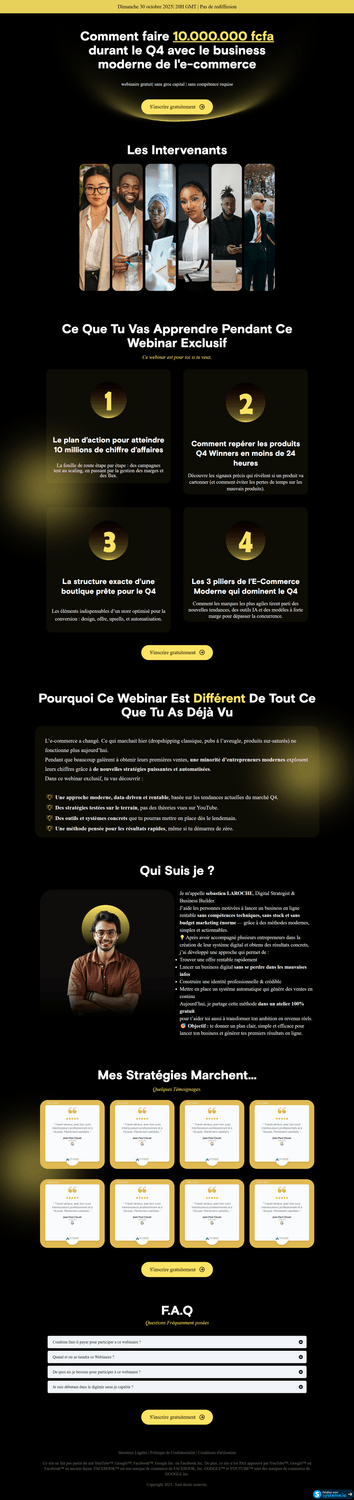 Page de capture pour webinaire