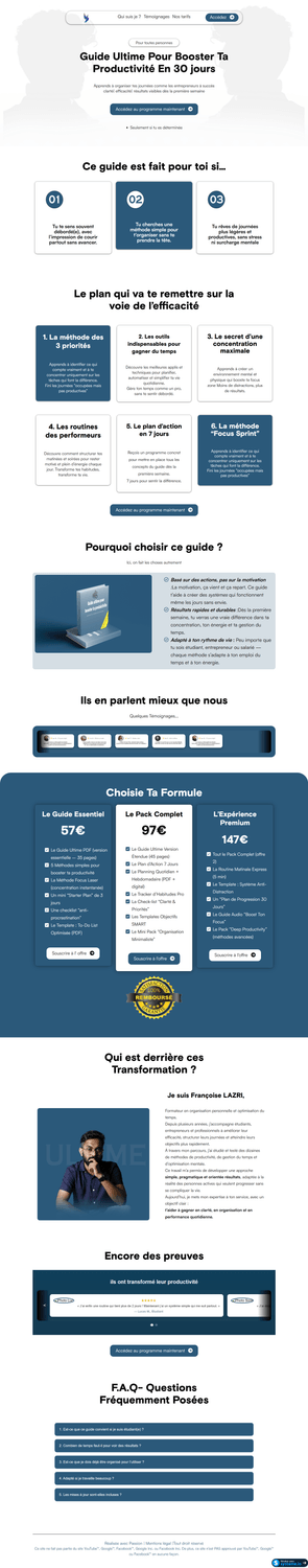 En général, entre 3 à 7 jours pour une page de capture, webinaire + remerciement mais pour certains pages plus complexes le délais de livraison est entre 10 à 14 jours . Je travaille vite, mais surtout bien : chaque tunnel est optimisé pour performer.